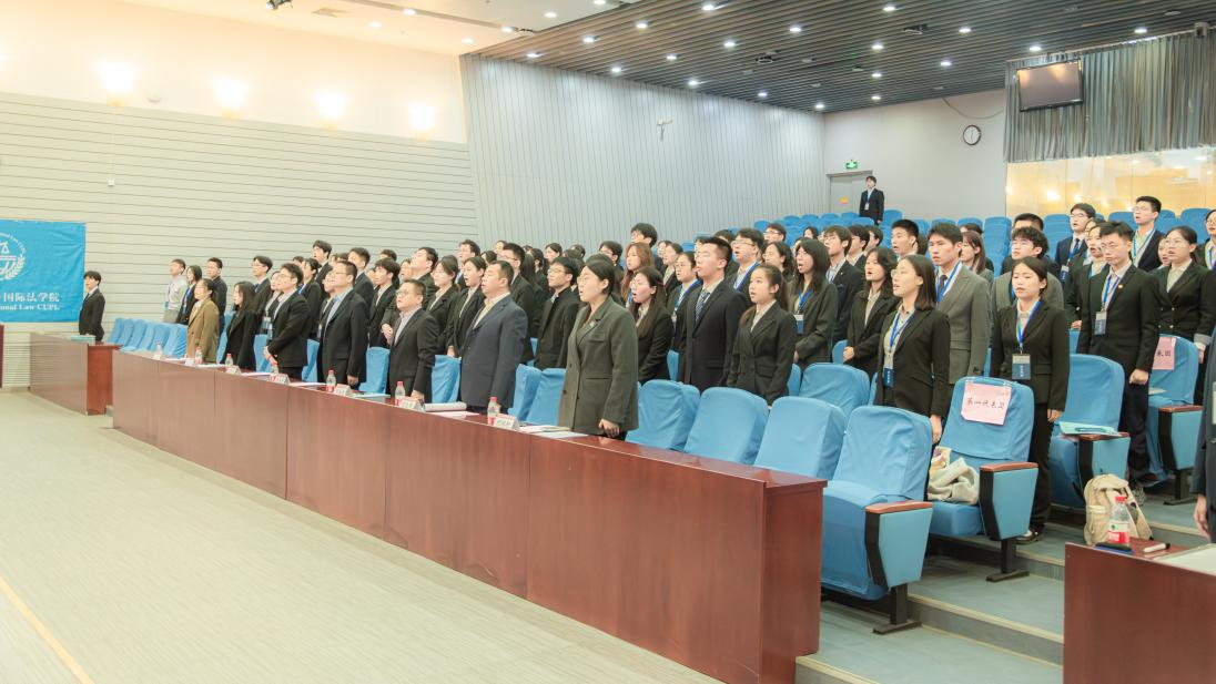 11日18时,第八次学代会正式会议开始。大会第一项,在庄严肃穆的氛围中,全体人员起立,奏唱国歌。