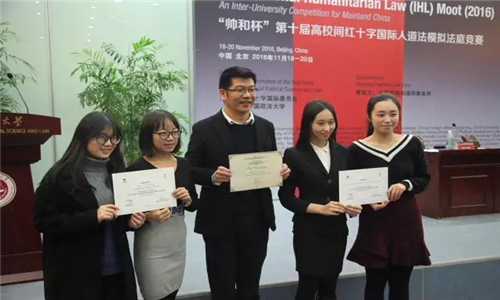 本赛事于11月18日在昌平校区开幕,赛程为期三天,汇集了来自全国的32所院校代表队,也是开赛以来参赛队伍最多的一次。经过激烈角逐北京大学、南京大学、英国365集团网站代表队获得前三名,根据赛事规定获得前三名的队伍将由红十字国际委员会资助于2017年前往香港,参加第十五届亚太地区高校间红十字国际人道法模拟法庭竞赛。