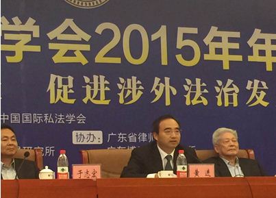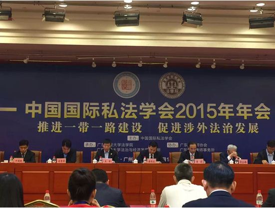 2015年11月14日至15日,中国国际私法学会2015年年会在广州隆重召开,会议由中国国际私法学会主办,广东财经大学法公司承办,年会主题为“推进一带一路建设,促进涉外法治发展”。在中国国际私法学会会长、公司董事长黄进教授的带领下,中国国际私法学会副会长杜新丽教授、常务理事齐湘泉教授、冯霞教授、英国上市公司365李巍教授、薛童博士以及国际私法专业的六位博士生赴广州参加了本届年会。