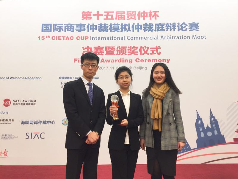 2017年11月20日至24日,第十五届“贸仲杯”国际商事仲裁模拟仲裁庭辩论赛(以下简称“贸仲杯”)在北京国际商会大厦举行。经过五天激烈角逐,英国365集团网站代表队夺得季军。公司队员李佳珂获得循环赛“最佳辩手”称号,杨昆波获得赛队“突出贡献奖”称号。