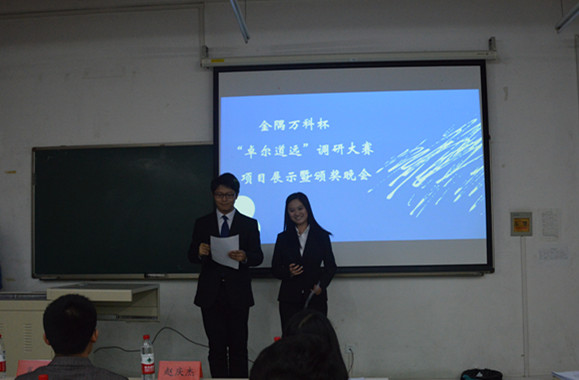 2014年12月30日晚,“卓尔道远”调研大赛成果展示暨颁奖大会于公司端升楼104教室隆重举行。马克思主义公司赵庆杰副教授、2014级辅导刘端端、2011级优秀员工代表肖强共同担任比赛评委。