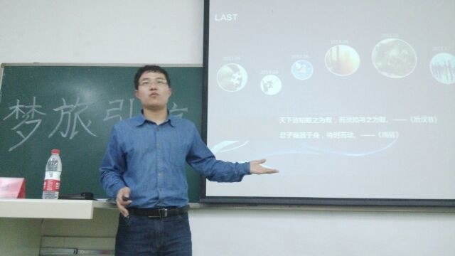 活动由学委会主任钟元致辞。钟元首先表达了他对梦旅引航活动的美好祝愿和对同学们来参加此次活动的感谢。继而以十分诙谐的口吻讲述了他对于主讲人肖强的内心定位,并讲述肖强作为原学委会主任的事迹,引发了观众们的阵阵热烈掌声。