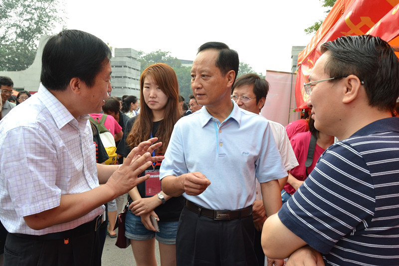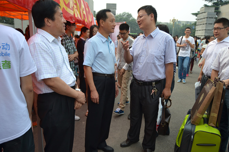 9月6日上午九时许,公司党委书记石亚军、党委副书记兼副董事长冯世勇等在相关部门负责人的陪同下来到公司的展台,翻阅了《群言》迎新特刊,并慰问参与迎新工作的志愿者们。石亚军书记强调,要注重新生的见解与感受,从新生的角度出发,进一步完善迎新工作。