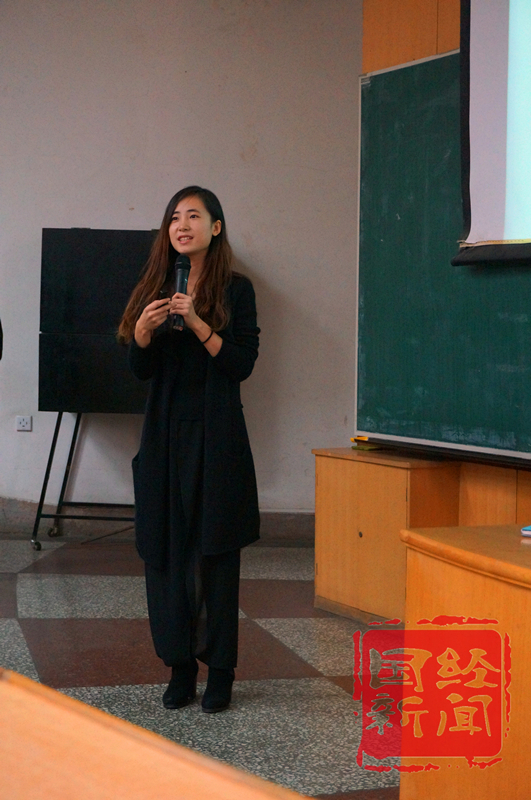 接下来发言的是李思晴同学。她主要介绍了出国留学方面的一些事项,包括政策、程序、毕业出路等。同时她也分享了自己的留学经验和思考,展现了法大优秀学子走向世界的风采。